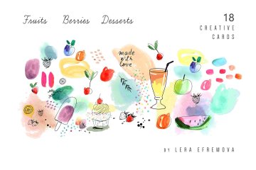 图穷联素材库 » 水果浆果和甜点插画 Fruits Berries Dess