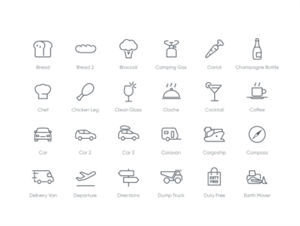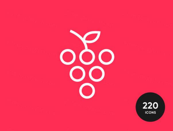 图穷联素材库 » 220个高品质食品饮料美食旅行度假矢量图标iOS Wired Food Tra