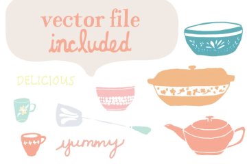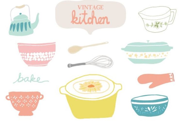 图穷联素材库 » 复古厨房插画图形 Vintage Kitchen Clip