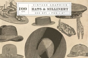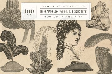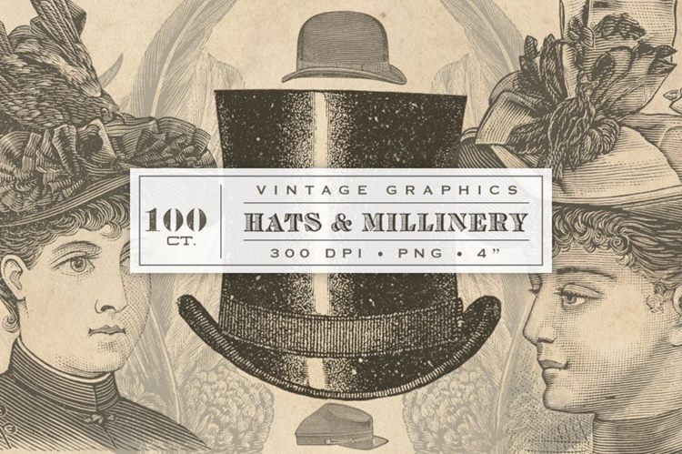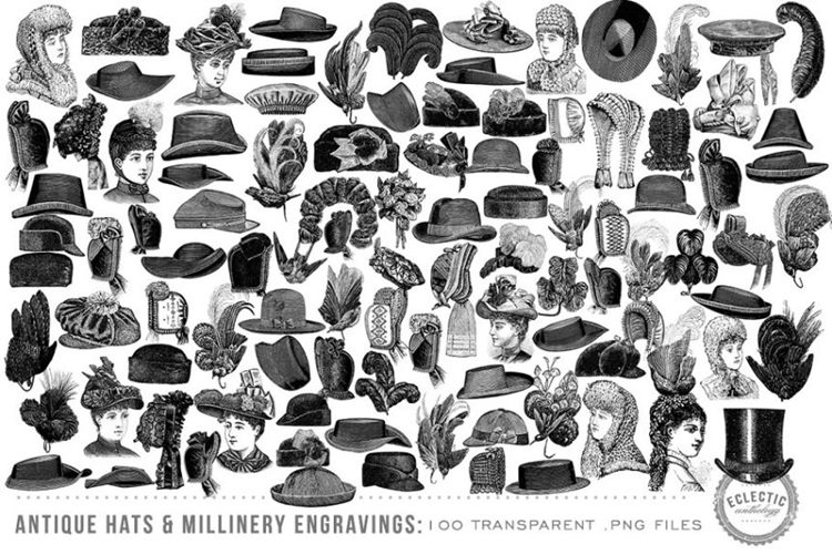图穷联素材库 » 经典的帽子插画图插画 Vintage Hats Millin