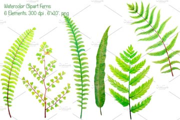 图穷联素材库 » 水彩绿植插画素材 Watercolor Clipart Fe