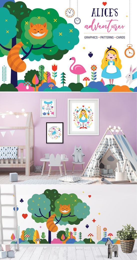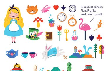 图穷联素材库 » 爱丽丝梦游仙境系列卡通插画 Alice in the won