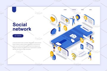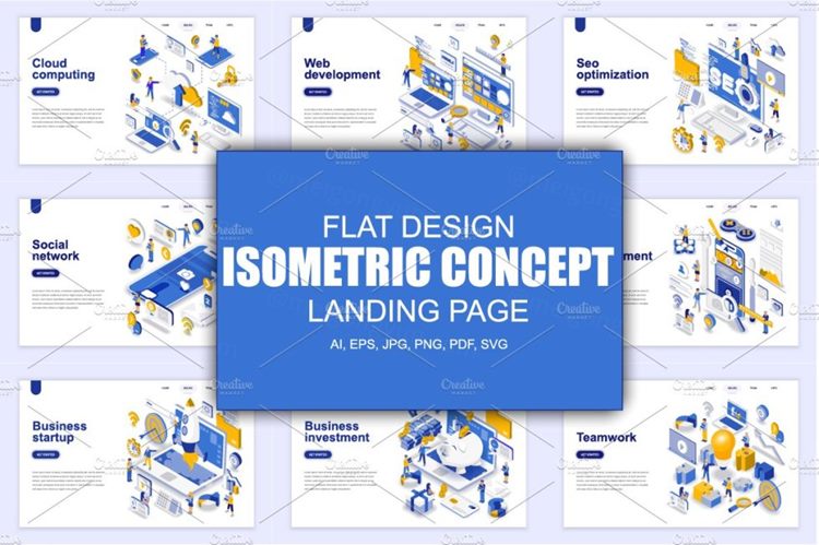图穷联素材库 » 现代网站着陆页等距概念插图集 Landing Page Te