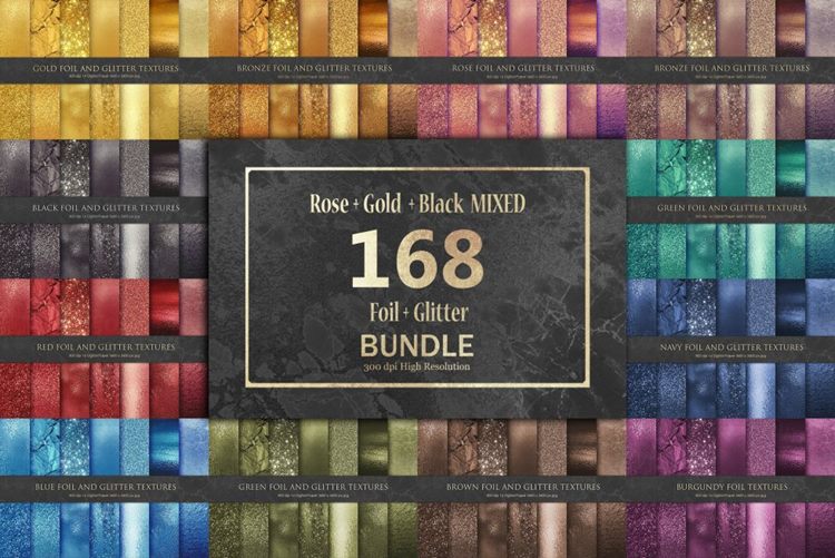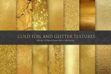 图穷联素材库 » 闪亮高贵的金箔艺术纸背景Foil and Glitter
