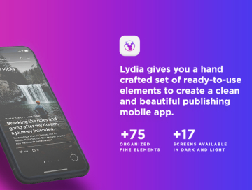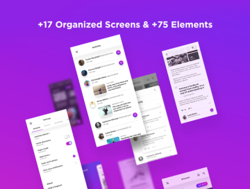 图穷联素材库 » 紫色时尚社交媒体博客交友移动手机APP UI工具包Lydia UI Kit