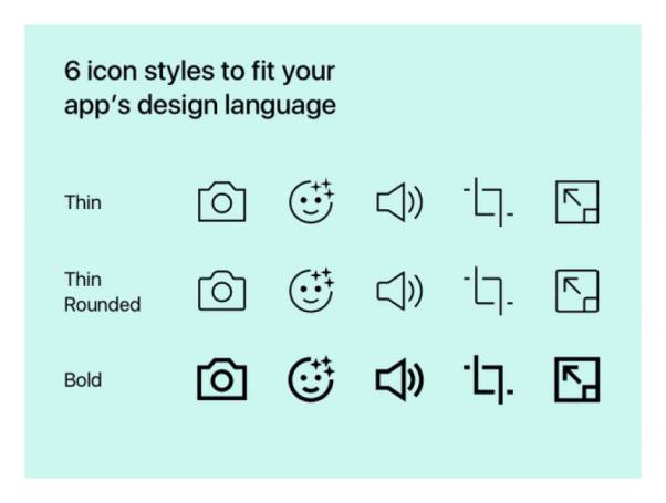 6种风格的照片视频编辑应用程序UI矢量图标集Manualicons
