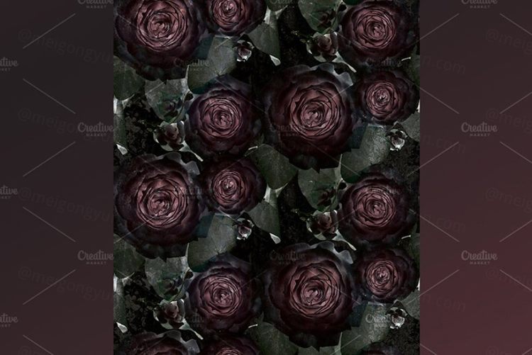 图穷联素材库 » 深色玫瑰图案背景 Dark Rose Tileable Pa