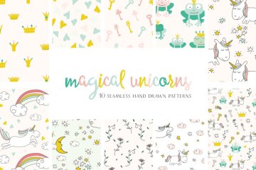 图穷联素材库 » 童话独角兽图案背景纹理 Fairytale Unicorn