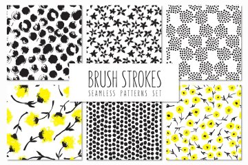 图穷联素材库 » 花卉笔刷无缝图案 Brush Strokes. Seamle