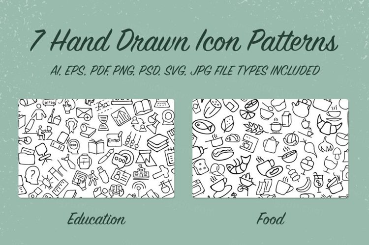 图穷联素材库 » 手绘图标背景纹理 7 Hand Drawn Icon Pat