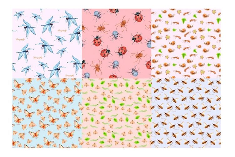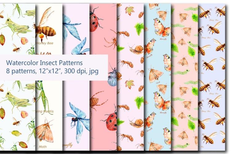 图穷联素材库 » 水彩昆虫图案背景纹理 Watercolor Insects
