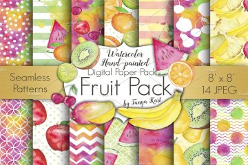 图穷联素材库 » 水果水彩数码纸包 Fruit Watercolor Digi