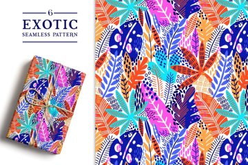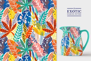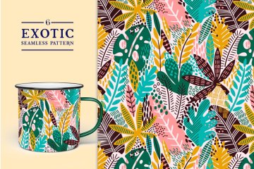 图穷联素材库 » 异国情调的树叶图案背景纹理 Exotic leaves