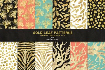 有机金箔数码图案背景纹理 Organic Gold Leaf