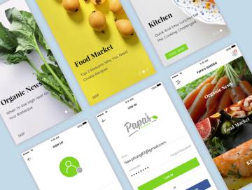 图穷联素材库 » 餐饮美食蔬菜水果配送外卖移动食品应用程序UI工具包Papas Garden