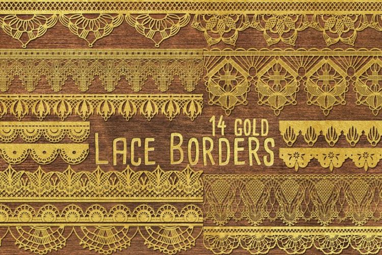 金色蕾丝边框图案 Gold Clip Art – Lace