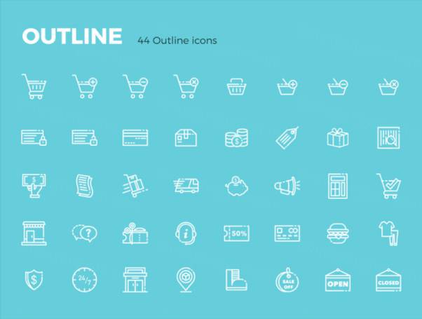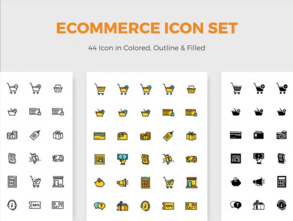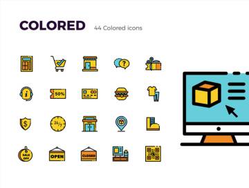图穷联素材库 » 44个电子商务购物彩色填充轮廓矢量图标集Picas Ecommerce Icon