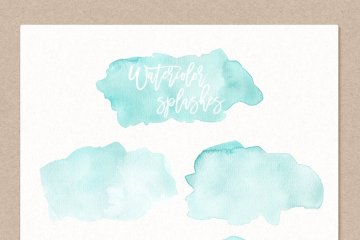 蓝色水彩肌理插画 Mint Watercolor Splas