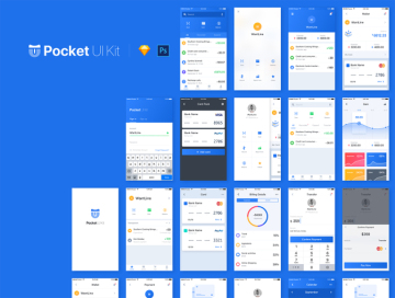 图穷联素材库 » 蓝色时尚金融财富科技银行支付移动手机应用程序APP UI工具包Pocket UI