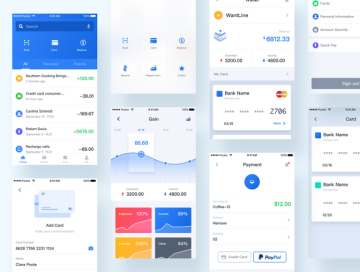 蓝色时尚金融财富科技银行支付移动手机应用程序APP UI工具包Pocket UI