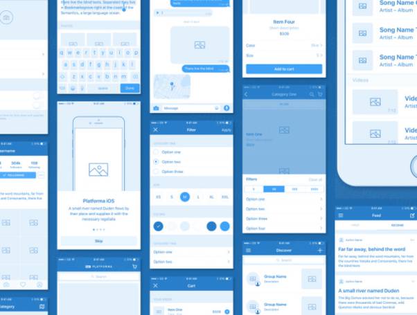 图穷联素材库 » 蓝色简洁实用移动手机APP原型设计终极线框UI套件Platforma for i