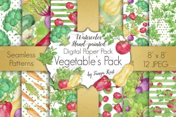 图穷联素材库 » 水彩素菜背景纹理Vegetable Watercolor D