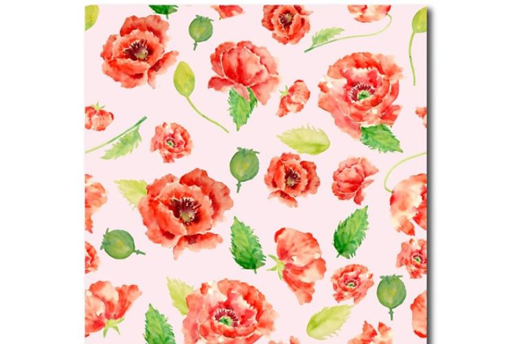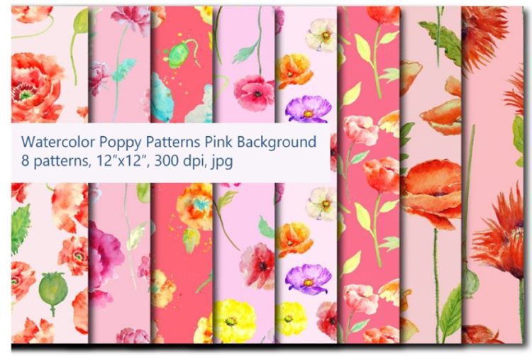 图穷联素材库 » 粉红色的主题水彩罂粟花图案 Watercolor Poppy