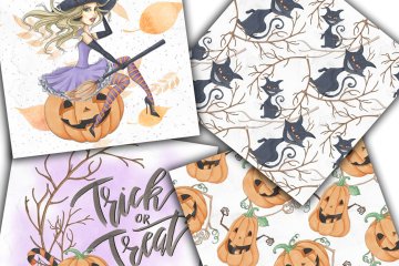 图穷联素材库 » 愉快的万圣节纸张包 Happy Halloween Pape