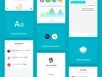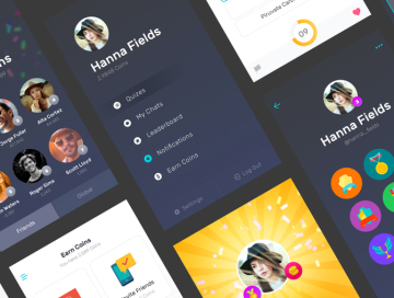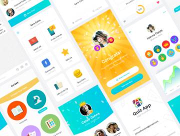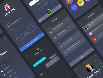 图穷联素材库 » 黑白双配色多功能时尚简洁社交聊天工具移动手机应用程序UI工具包Quiz App