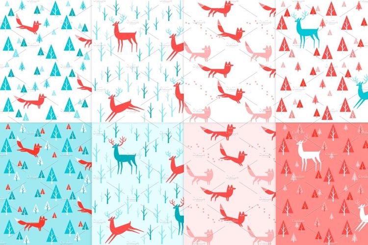 图穷联素材库 » 鹿和狐狸无缝图案 8 deers and foxes