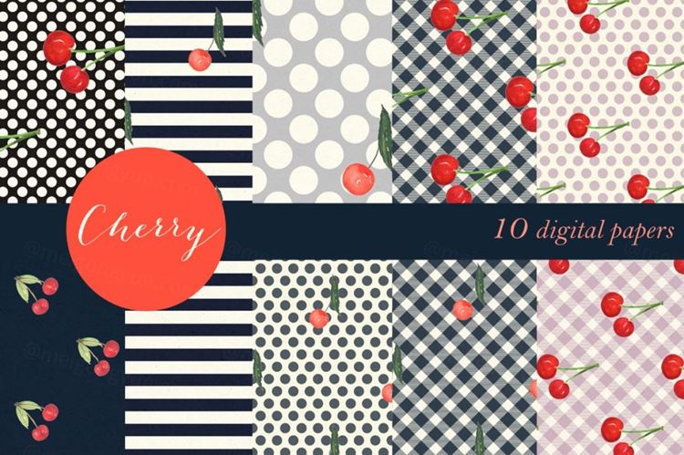 图穷联素材库 » 樱桃水彩背景纹理素材 Cherry. Pin up