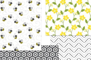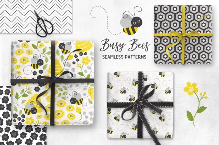 图穷联素材库 » 通蜜蜂背景纹理无缝图案素材 Baby Bees