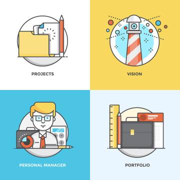 彩色线条时尚简约扁平化矢量图标icon合集color line concepts