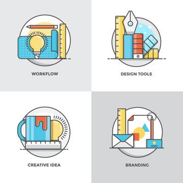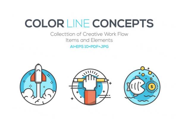 图穷联素材库 » 彩色线条时尚简约扁平化矢量图标icon合集color line concepts