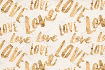 图穷联素材库 » 烫金LOVE爱心背景纹理 Love amp;amp; Kis