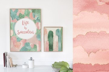 图穷联素材库 » 烫金粉红多肉水彩背景纹理 Pink Succulents