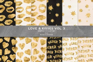 图穷联素材库 » 烫金爱心背景纹理 Love Kisses Warm Gold