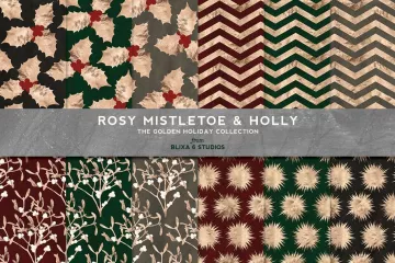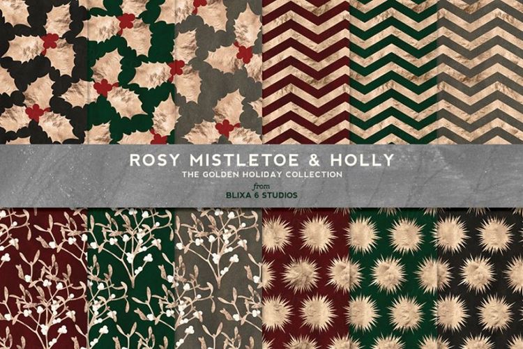 图穷联素材库 » 烫金圣诞背景纹理 Mistletoe Holly Chri