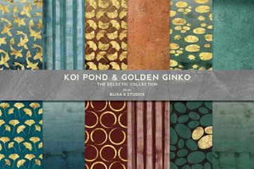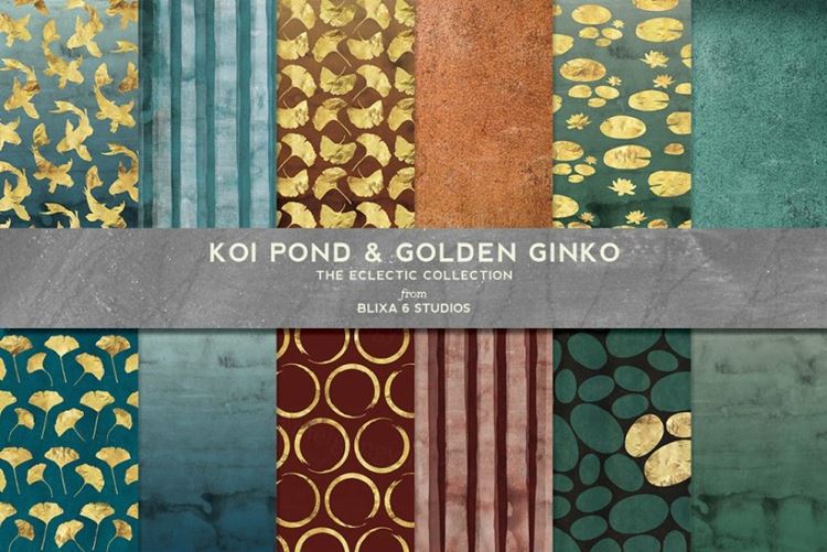 烫金池塘背景纹理 Koi Pond Golden Gink