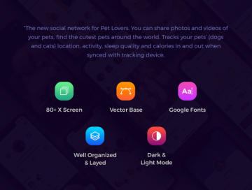 图穷联素材库 » 宠物社交网络健康跟踪移动手机应用程序UI工具包Pet Lover 2.0 Soc