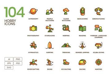 104个时尚个人爱好山脉徒步旅行阅读咖啡矢量图标集Hobby Icons