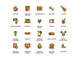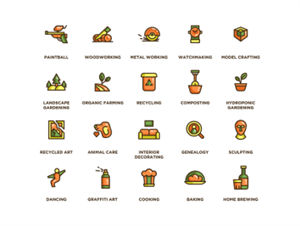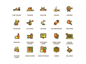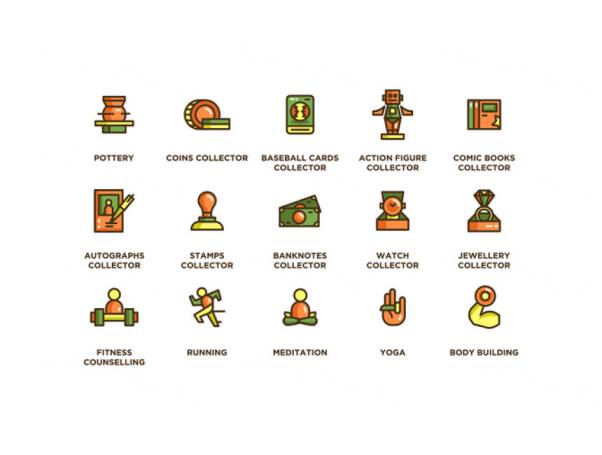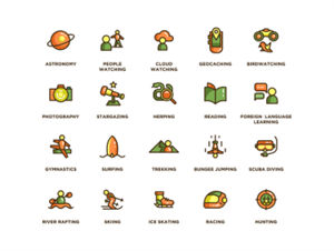 图穷联素材库 » 104个时尚个人爱好山脉徒步旅行阅读咖啡矢量图标集Hobby Icons