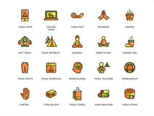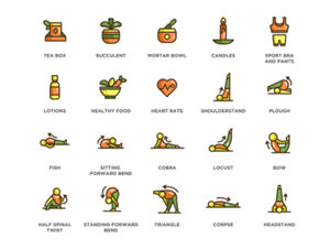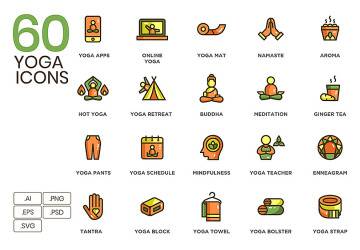 60个体育运动锻炼减肥瑜伽身心放松矢量图标集Yoga Icons