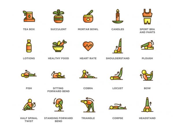 图穷联素材库 » 60个体育运动锻炼减肥瑜伽身心放松矢量图标集Yoga Icons