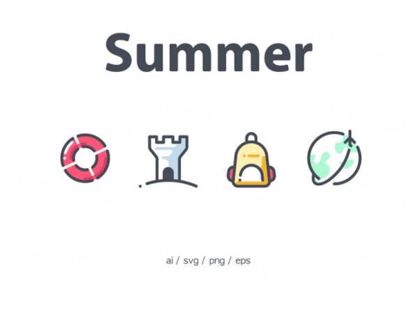 图穷联素材库 » 夏季跑步太空食物饮料冰淇淋游泳拖鞋日历元素矢量图标集Summer
