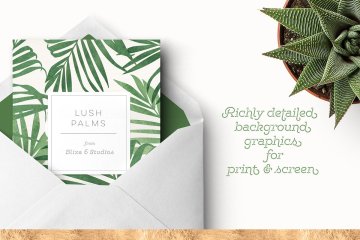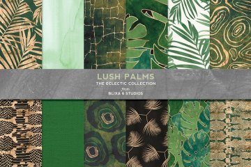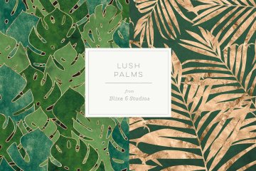 图穷联素材库 » 绿色烫金背景纹理 Lush Palms Green