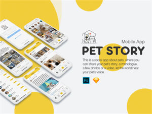 图穷联素材库 » 一款可爱宠物故事分享社交移动手机应用程序UI工具包Pet Story UI Ki