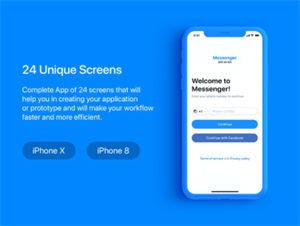 图穷联素材库 » 多用途时尚简洁社交聊天信息移动手机APP UI工具包Messenger iOS