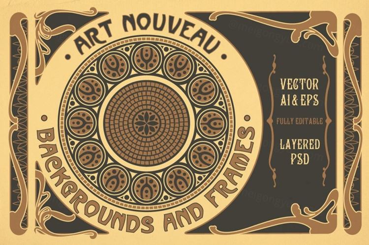 图穷联素材库 » 新艺术运动背景和画框 Art Nouveau Backgro