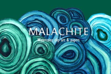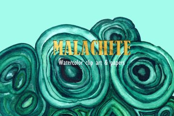梦幻的孔雀石水彩背景纹理素材 Malachite textu